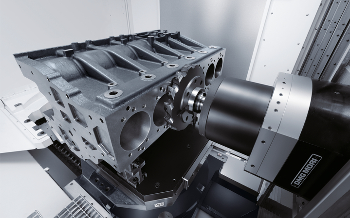 Die Möglichkeit, anspruchsvolle Bauteile von mehreren Seiten in einer Aufspannung zu bearbeiten, trägt ebenfalls zu einer effizienten und produktiven Fertigung bei, weil zum einen Umspannvorgänge und damit auch Nebenzeiten minimiert werden. Zum anderen erleichtert es die Bearbeitung von Komponenten mit niedrigen Lage- und Bezugstoleranzen. Zylinderblöcke und -köpfe verfügen beispielsweise über zahlreiche Bohrungen, Dichtflächen und Gewinde, die auf den unterschiedlichen Seiten eine hochgenaue Form- und Lagetoleranz zueinander verlangen.